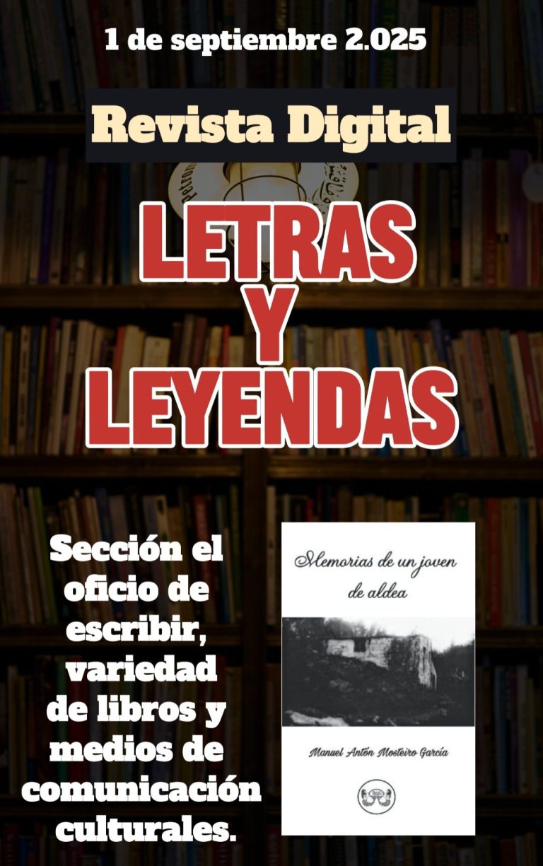 El canal literario Letras y Leyendas estrena el día 1 de septiembre revista propia. Pueden participar todos los escritores/as y poetas de forma gratuita, siempre y cuando me envíen la información como la solicito. Es una revista que saldrá mensualmente y contará con una sección del escritor y filólogo Manuel Antón Mosteiro García. En las siguientes páginas conoceremos diferentes autores, obras y dónde comprarlas. También en sus últimas páginas encontrarán medios culturales que ofrecen entrevistas en diferentes países. Espero que sea de su agrado y que les ayude a aprender con la sección especial, comprar un libro que les llame la atención y, porque no, a conseguir entrevistas en otros medios que les puedan ayudar a los escritores a dar a conocer sus obras. Muchas gracias por todo vuestro apoyo que me dais en cada proyecto. Un gran abrazo